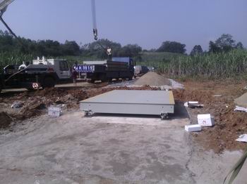 柳州特力汽車衡采用模塊化軸銷搭接,以便秤臺之間可以搭接互換,便于秤體現(xiàn)場安裝。限位采用縱向與橫向結(jié)合的方式,保證秤體縱向、橫向不移位。